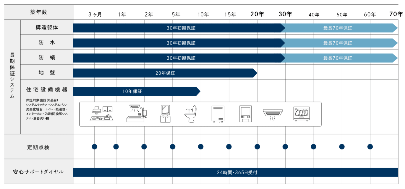 新仕様①保証体制が革新!初期保証30年・最長70年へ