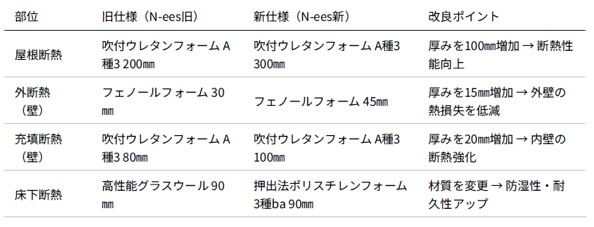 🏠 N-ees断熱仕様 比較表(旧仕様 vs 新仕様)